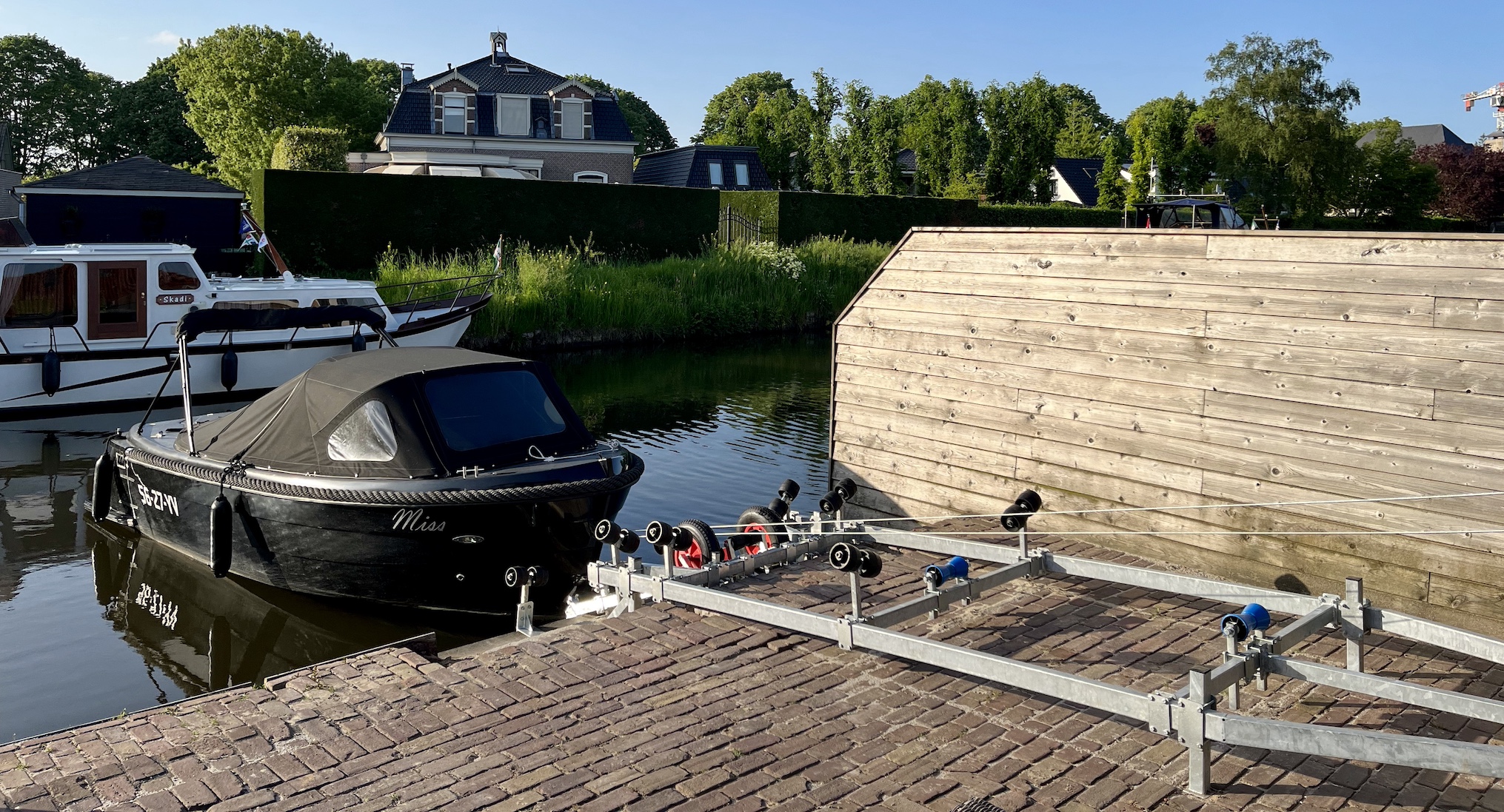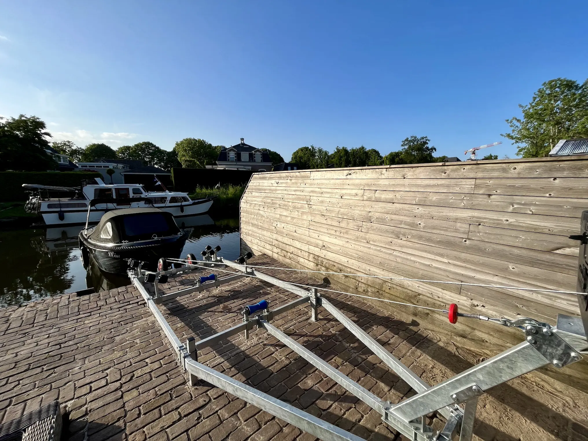 Dankzij het innovatieve en robuuste frame kan de boot met één druk op de knop veilig en probleemloos uit het water worden getakeld. Het systeem is speciaal ontworpen om het hoogteverschil op de kade te overbruggen, waardoor het dagelijks gebruik comfortabel, efficiënt en betrouwbaar verloopt.